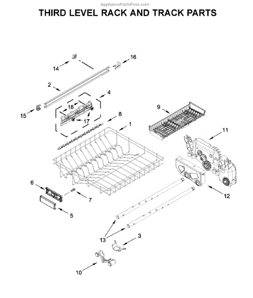 The Third Level Rack Support is an OEM part for Whirlpool dishwashers. It provides secure placement and stability for an additional third rack, allowing for maximum utilization of space within the dishwasher tub.