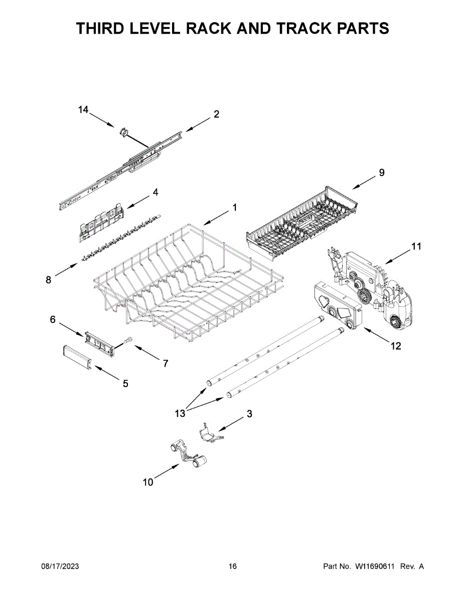 Parts for Kitchenaid KDTM804KPS2: Third Level Rack And Track Parts