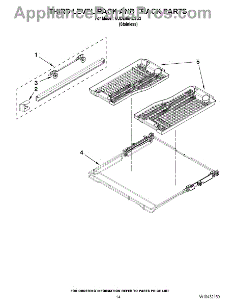 Parts for Kitchenaid KUDE60HXSS3: 11 - Third Level Rack And Track Parts
