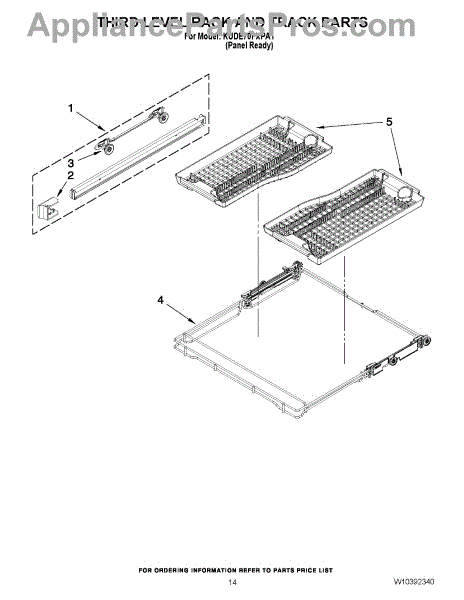 Parts for Kitchenaid KUDE70FXPA1: 11 - Third Level Rack And Track Parts