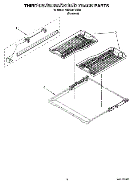 Parts for Kitchenaid KUDE70FVSS0: 11 - Third Level Rack And Track Parts, Optional Parts (Not Included) Parts