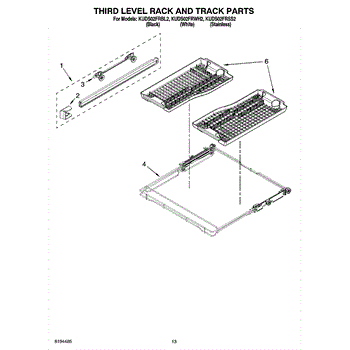 Parts for Kitchenaid KUDS02FRWH2: 10 - Third Level Rack And Track Parts