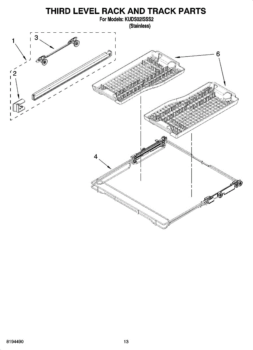 Complete upper dishrack assembly for dishwashers. Installs on top level to hold glasses, bowls, and utensils. Replace if rack is cracked or broken.