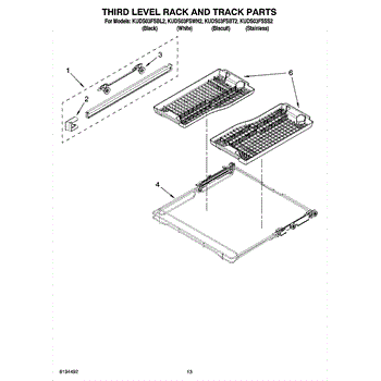 Parts for Kitchenaid KUDS03FSSS2: 10 - Third Level Rack And Track Parts