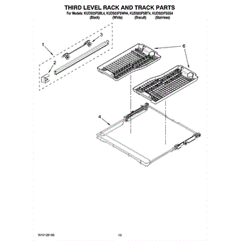 Parts for Kitchenaid KUDS03FSSS4: 10 - Third Level Rack And Track Parts
