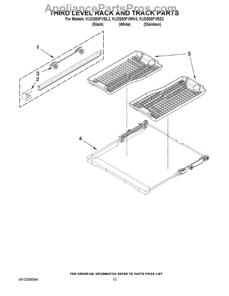 Parts for Kitchenaid KUDS50FVWH3: 12 - Third Level Rack And Track Parts