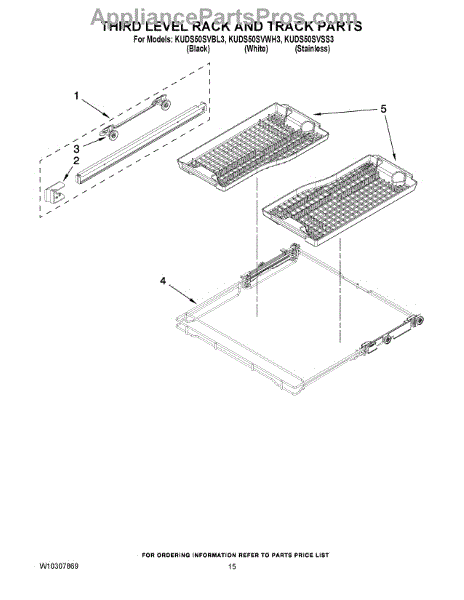 Parts for Kitchenaid KUDS50SVBL3: 12 - Third Level Rack And Track Parts