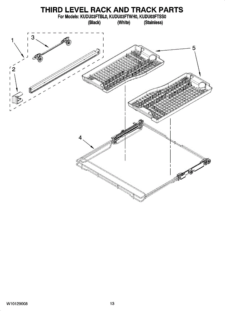Parts for Kitchenaid KUDU03FTBL0: 10 - Third Level Rack And Track Parts