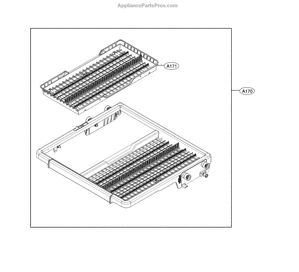 The Rack Assembly is an OEM part for LG dishwashers. It is the rack that holds dishes, glassware, utensils, and cookware during the wash cycle.