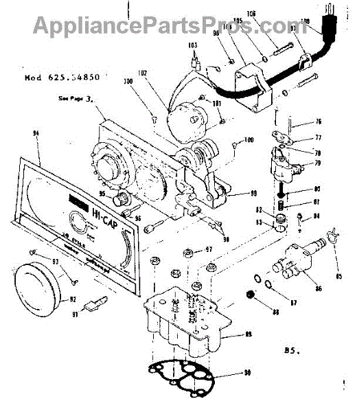 Parts for Kenmore 625.34850 (62534850, 625 34850): Timer, Cam Nest Assembly Valve Cap Assembly And Associated P Parts