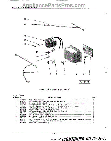 Parts for Kitchenaid KDI57: 14 - Timer And Electrical Parts