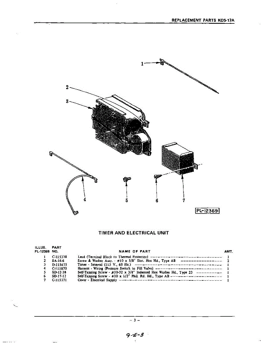 Parts for Kitchenaid KDS37A: 03 - Timer And Electrical Parts