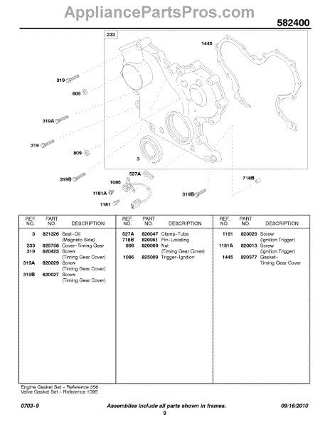 Parts for Briggs & Stratton 582447-0105-A1: Timing Gear Cover, Ignition Trigger Parts
