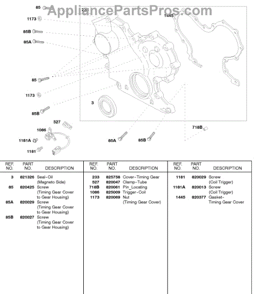 Parts for Briggs & Stratton 58A447-0234-99: Timing Gear Cover, Coil Trigger Parts