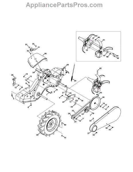 This is a genuine replacement wheel assembly for several tillers. The wheels on a tiller allow the machine to move forward and backward. They roll as the tiller breaks up the soil, and help the operator to travel across the ground. Sometimes, wheels lose their seal or become damaged, which causes the tire to lose pressure and flatten. If the pressure in each tire differs, it will cause the tiller to pull to one side while operating. This makes it very difficult to control and till in a straight line. In this case, the tire may need replacing. Replacement is simple and fast and doesn't require any tools. Remove the pin in the center of the wheel, lift the front of the tiller, and remove the tire from the axle. Slide the new tire onto the axle, line up the holes and install the pin. This can be done in a matter of minutes.This genuine OEM replacement tiller wheel assembly is sold as an individual part and is shipped directly from the manufacturer. This part is compatible with several tillers made by MTD, Yard Man, Troy-Bilt, Cub Cadet, and Husky.