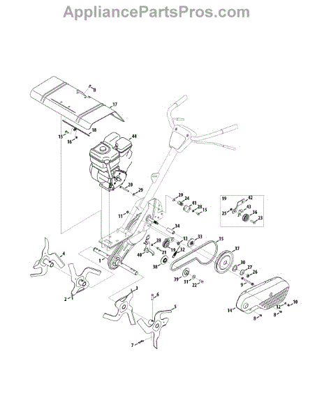 This left-hand inner tines assembly sit next to the outer tines on the left side of tillers from a variety of major manufacturers. The tines are the part of the equipment that breaks up the soil to create a garden and allow cultivation. The part is made of strong metal, but over time it can start to wear down or break when running over large rocks or other items.If the tines are broken or have been worn down, they will need to be replaced. Tines that are worn will not dig into the earth as well as new tines. A hammer and a set of pliers are required to make the replacement. Remove the tines from the tiller after turning it off and taking out the spark plug wire. The new tines can be installed in the same place.These inner tines are made to be used with tillers created by MasterCut, Yard-Man, Bolens, Montgomery Wards, Huskee, MTD, Yard Machines, Cub Cadet, and Craftsman. It is sold as an individual part. This is a genuine OEM replacement part that is sourced directly from the manufacturer.