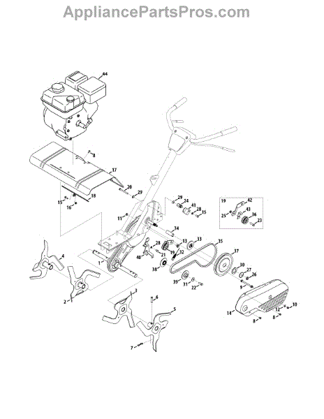 This left-hand inner tines assembly sit next to the outer tines on the left side of tillers from a variety of major manufacturers. The tines are the part of the equipment that breaks up the soil to create a garden and allow cultivation. The part is made of strong metal, but over time it can start to wear down or break when running over large rocks or other items.If the tines are broken or have been worn down, they will need to be replaced. Tines that are worn will not dig into the earth as well as new tines. A hammer and a set of pliers are required to make the replacement. Remove the tines from the tiller after turning it off and taking out the spark plug wire. The new tines can be installed in the same place.These inner tines are made to be used with tillers created by MasterCut, Yard-Man, Bolens, Montgomery Wards, Huskee, MTD, Yard Machines, Cub Cadet, and Craftsman. It is sold as an individual part. This is a genuine OEM replacement part that is sourced directly from the manufacturer.