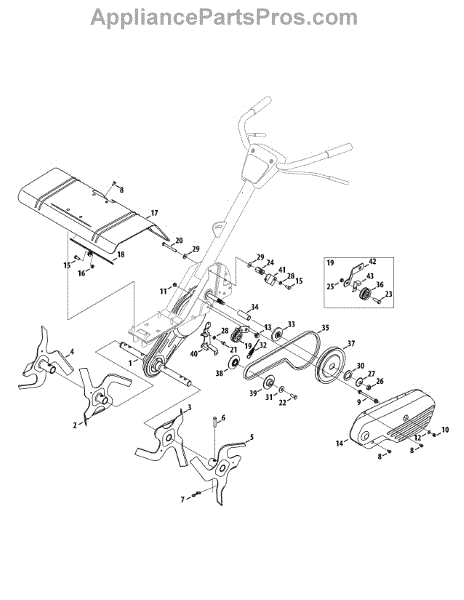 This left-hand inner tines assembly sit next to the outer tines on the left side of tillers from a variety of major manufacturers. The tines are the part of the equipment that breaks up the soil to create a garden and allow cultivation. The part is made of strong metal, but over time it can start to wear down or break when running over large rocks or other items.If the tines are broken or have been worn down, they will need to be replaced. Tines that are worn will not dig into the earth as well as new tines. A hammer and a set of pliers are required to make the replacement. Remove the tines from the tiller after turning it off and taking out the spark plug wire. The new tines can be installed in the same place.These inner tines are made to be used with tillers created by MasterCut, Yard-Man, Bolens, Montgomery Wards, Huskee, MTD, Yard Machines, Cub Cadet, and Craftsman. It is sold as an individual part. This is a genuine OEM replacement part that is sourced directly from the manufacturer.