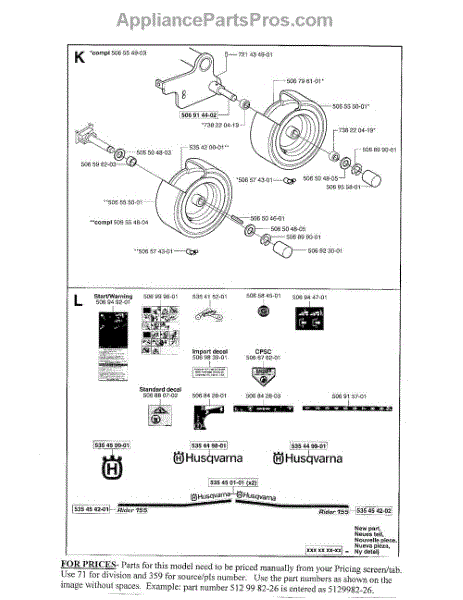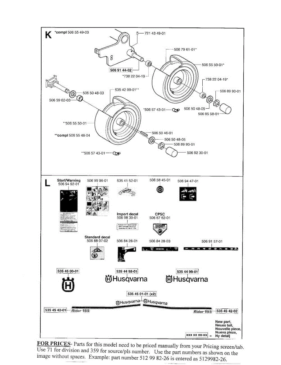 Parts for Husqvarna RIDER 155: Tires, Decals Parts