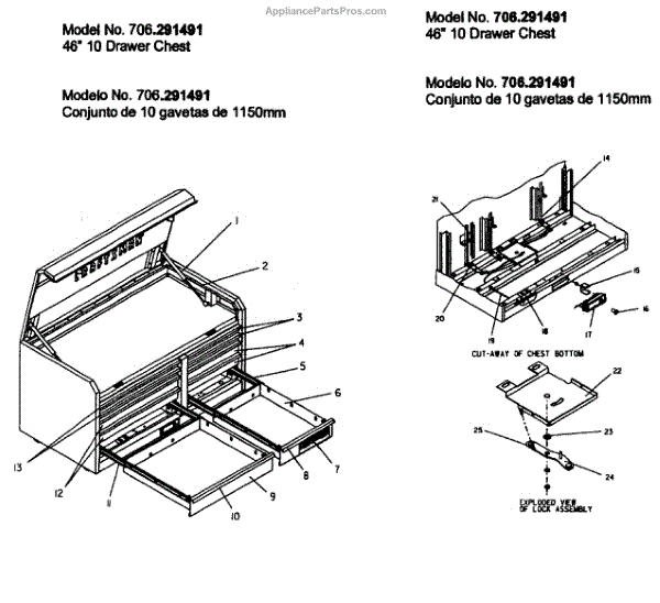 Parts for Craftsman 706291491: Tool Chest Parts
