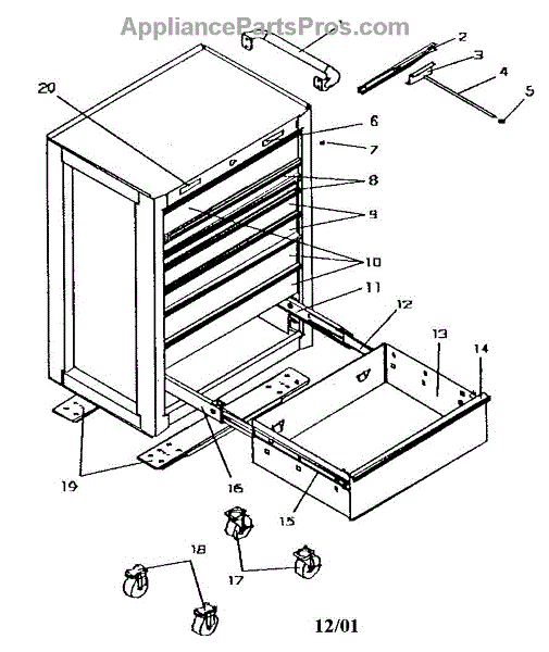 Parts for Craftsman 706597190: Tool Chest Parts