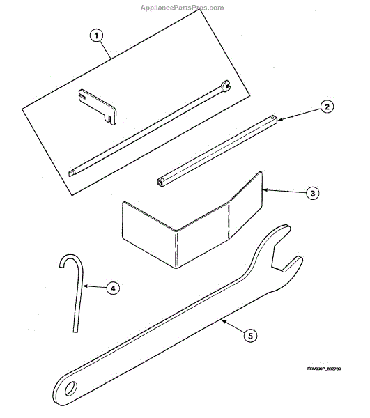 Specialized service wrench for washer transmission and hub fasteners. Essential tool for technicians performing maintenance on specific washer models.