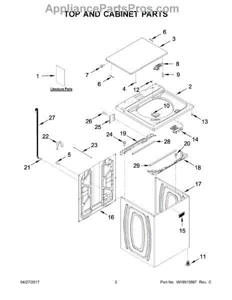 This cabinet is the main outer housing that supports and protects the appliance's internal components while giving the unit its finished exterior. It restores structural integrity and proper panel alignment for safe, reliable operation. What it does: