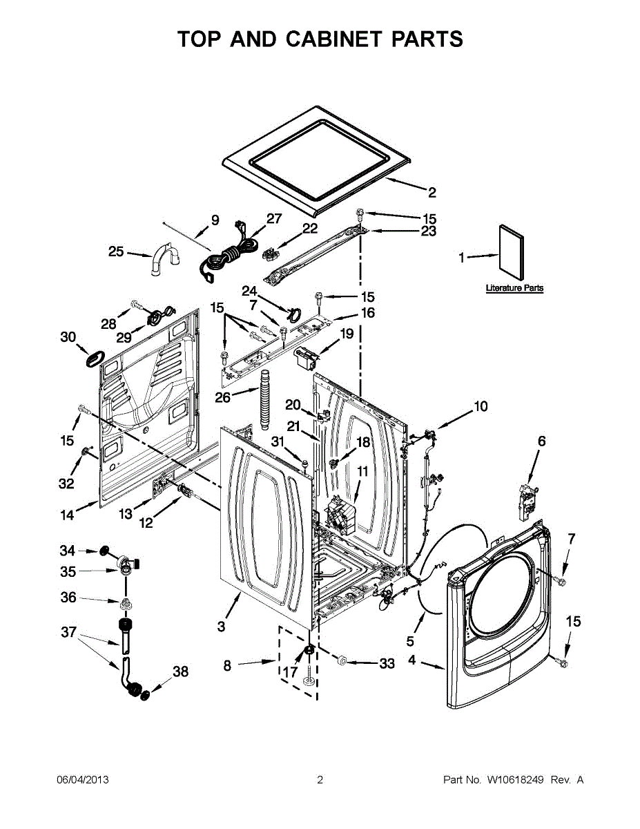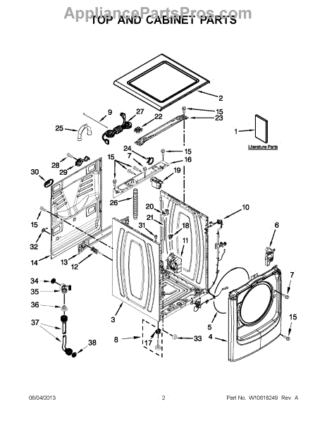 Exterior upper cover panel for washers. Restores a finished look and protects internal components. Replace if cracked, dented, or damaged from impact.