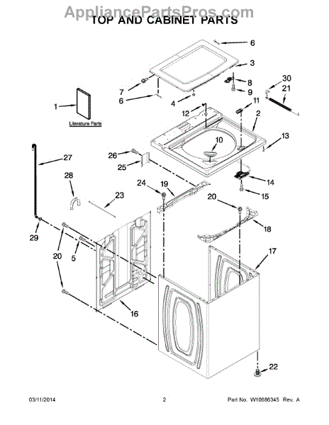 This cabinet is the main outer housing that supports and protects the appliance's internal components while giving the unit its finished exterior. It restores structural integrity and proper panel alignment for safe, reliable operation. What it does: