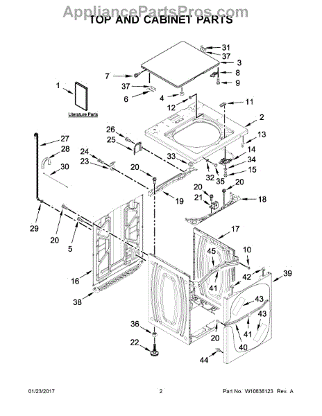 This lid hinge pad fits between the washer lid hinge and the cabinet. It cushions the joint to reduce squeaks and metal wear, helping keep the lid aligned and operating smoothly.