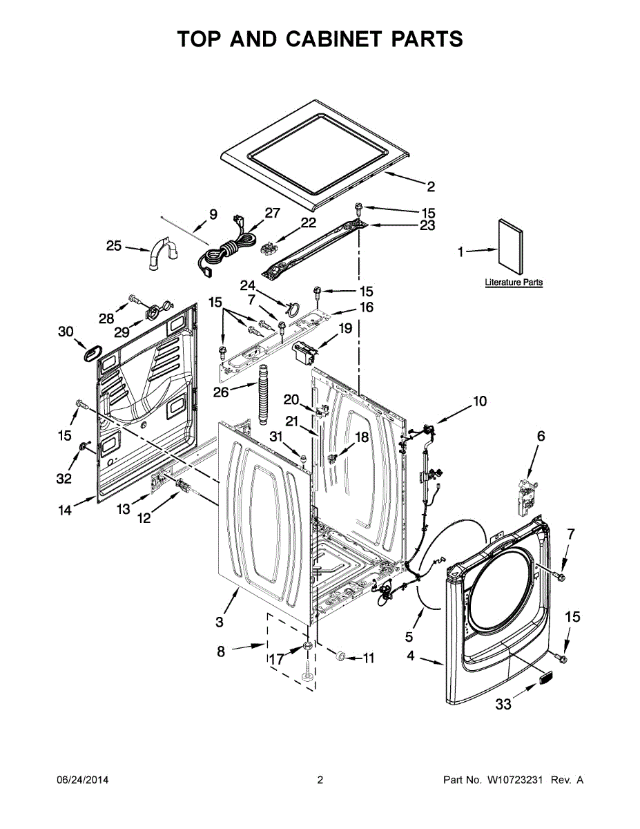 This top panel is the exterior upper cover that protects internal washer parts and gives the appliance a finished look. It restores a secure mounting surface for the control area and helps keep water and debris out of the cabinet. What it does