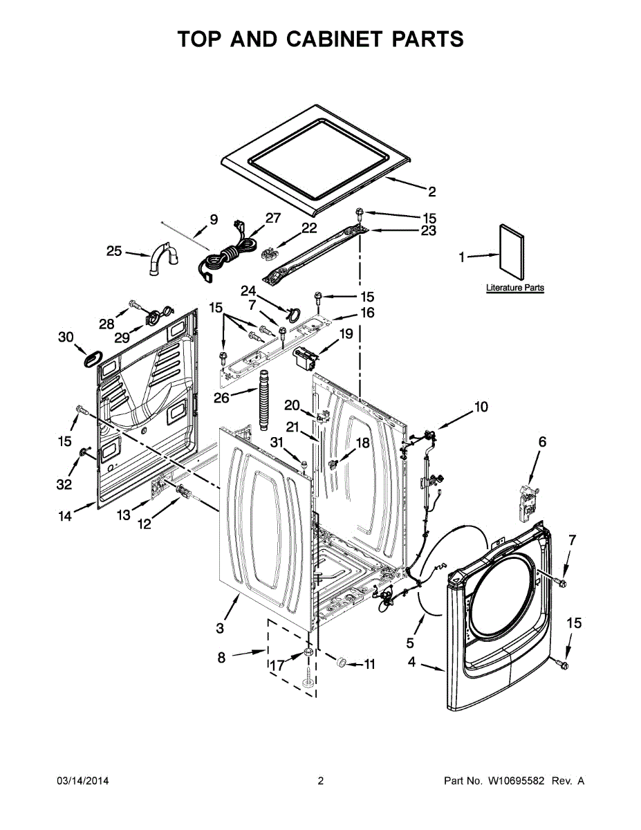 This top panel is the exterior upper cover that protects internal washer parts and gives the appliance a finished look. It restores a secure mounting surface for the control area and helps keep water and debris out of the cabinet. What it does