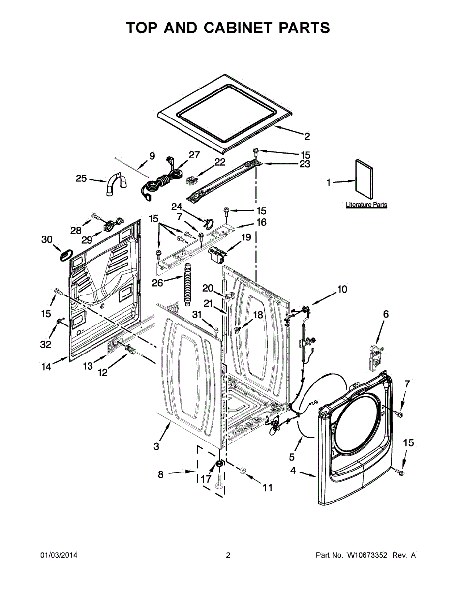 This top panel is the exterior upper cover that protects internal washer parts and gives the appliance a finished look. It restores a secure mounting surface for the control area and helps keep water and debris out of the cabinet. What it does