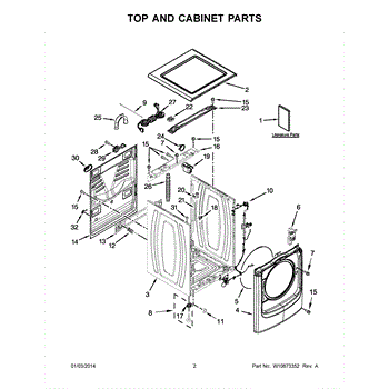 This top panel is the exterior upper cover that protects internal washer parts and gives the appliance a finished look. It restores a secure mounting surface for the control area and helps keep water and debris out of the cabinet. What it does