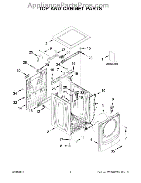 The Drain Hose is an OEM replacement part for Whirlpool washing machines. Located at the rear base of the unit, this flexible vinyl hose routes wash water out of the tub and to household drainage pipes. Causes involve regular flexing weakening hose material integrity over many years. Mineral buildups may also restrict water flow within. Symptoms of a problematic drain hose include: