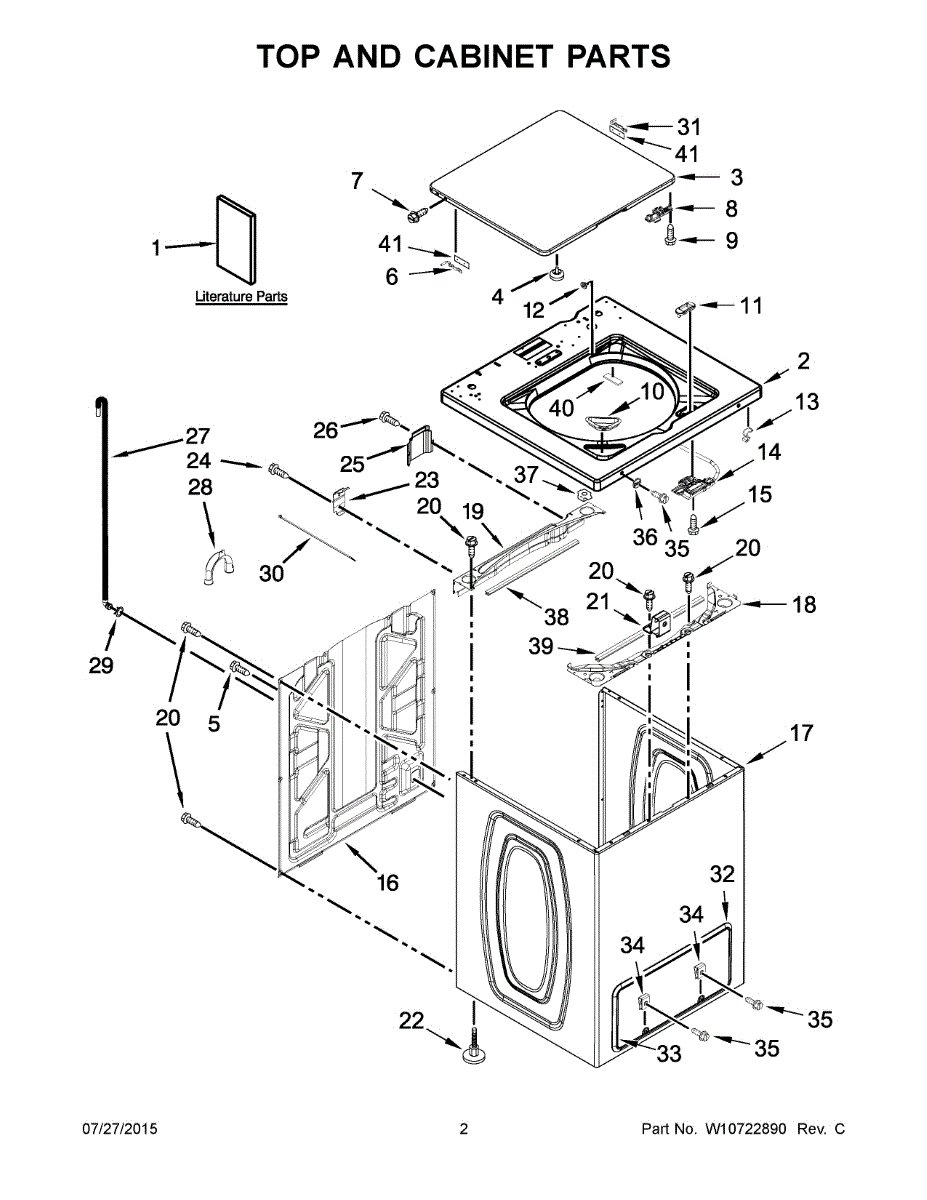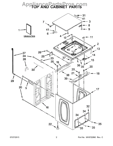 Parts for Maytag MVW18PRBWW0: 02 - Top And Cabinet Parts