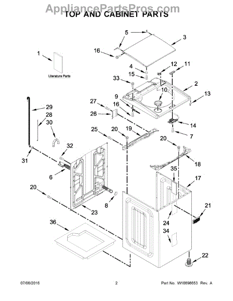 The Top is an OEM part for Whirlpool washing machines. It forms the outer top shell of the washer, providing structure and housing for internal components. The top protects suspension rods, drive motor, controls and other parts while maintaining an attractive aesthetic appearance. It is constructed from durable materials designed to withstand the mechanical stresses of the wash cycle.