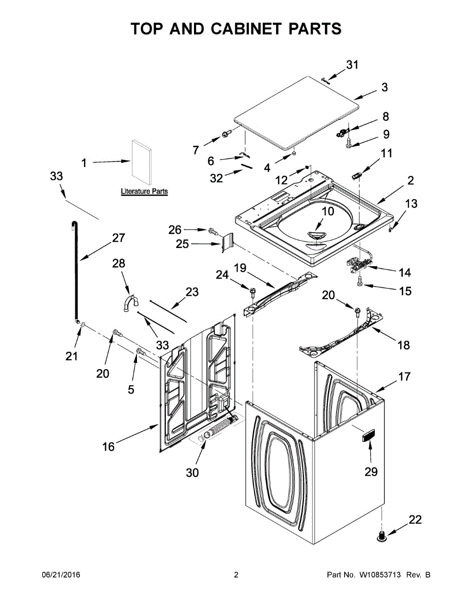 The Top Panel is an OEM part for Whirlpool top-loading washing machines. It forms the aesthetic facade at the top of the washer, providing the interface for cycle and option selections.