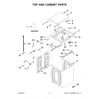 The Washer Lid Screw is an OEM part for Whirlpool washing machines. This 6-32 x .340 screw secures the washer lid to the hinge assembly, ensuring the lid opens and closes smoothly and stays securely in place during operation.
