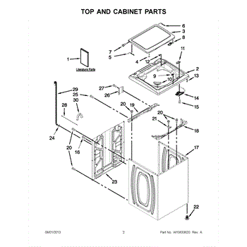 This replacement lid restores the top cover of a top-load washer, protecting the wash tub and providing a finished appearance. It's a direct-fit exterior part designed to replace a damaged or missing lid. What it does: