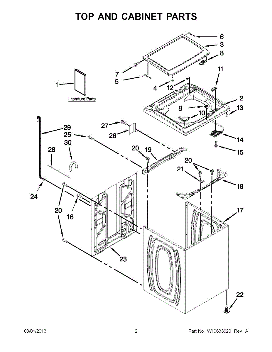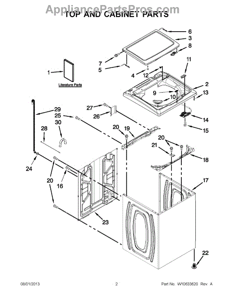 This cabinet is the main outer housing that supports and protects the appliance's internal components while giving the unit its finished exterior. It restores structural integrity and proper panel alignment for safe, reliable operation. What it does: