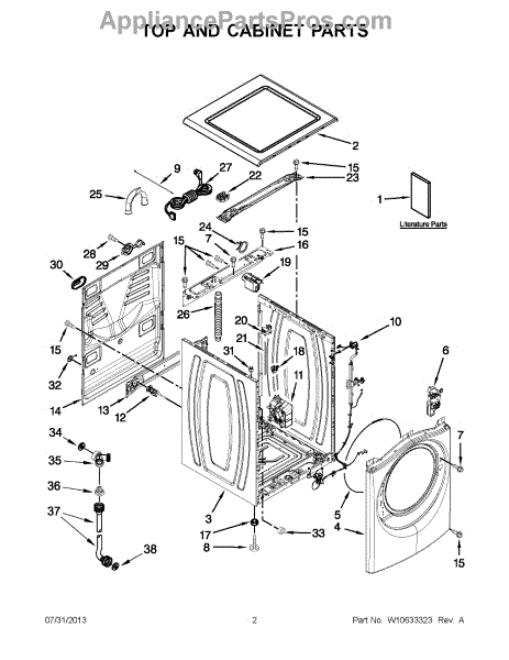 The Drain Hose is an OEM replacement part for Whirlpool washing machines. Located at the rear base of the unit, this flexible vinyl hose routes wash water out of the tub and to household drainage pipes. Causes involve regular flexing weakening hose material integrity over many years. Mineral buildups may also restrict water flow within. Symptoms of a problematic drain hose include: