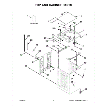 The Top is an OEM part for Whirlpool washing machines. It forms the outer top shell of the washer, providing structure and housing for internal components. The top protects suspension rods, drive motor, controls and other parts while maintaining an attractive aesthetic appearance. It is constructed from durable materials designed to withstand the mechanical stresses of the wash cycle.