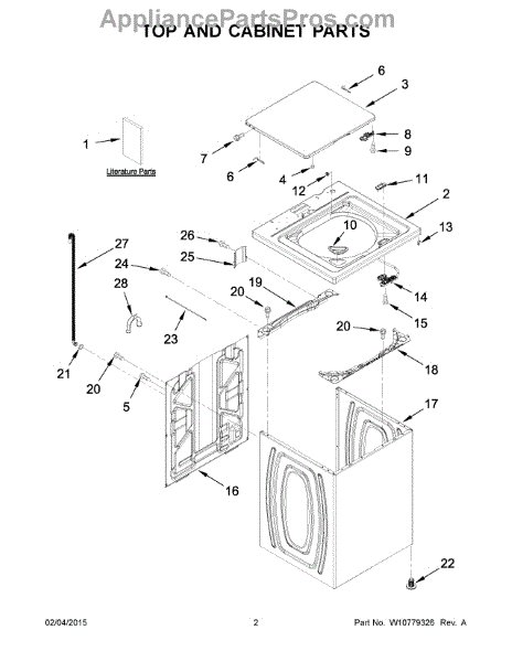 Replacement top for a 27-inch laundry appliance. Restores a secure, finished cover for the cabinet, protecting internal components and improving the appliance's appearance after damage or wear. What it does: