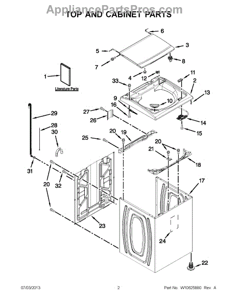 This cabinet is the main outer housing that supports and protects the appliance's internal components while giving the unit its finished exterior. It restores structural integrity and proper panel alignment for safe, reliable operation. What it does: