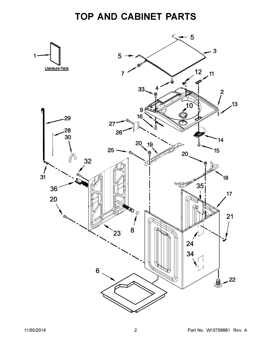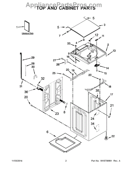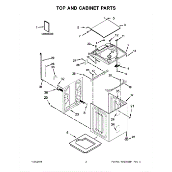 The Top is an OEM part for Whirlpool washing machines. It forms the outer top shell of the washer, providing structure and housing for internal components. The top protects suspension rods, drive motor, controls and other parts while maintaining an attractive aesthetic appearance. It is constructed from durable materials designed to withstand the mechanical stresses of the wash cycle.