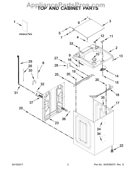 The Top is an OEM part for Whirlpool washing machines. It forms the outer top shell of the washer, providing structure and housing for internal components. The top protects suspension rods, drive motor, controls and other parts while maintaining an attractive aesthetic appearance. It is constructed from durable materials designed to withstand the mechanical stresses of the wash cycle.