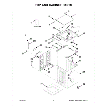 The Top is an OEM part for Whirlpool washing machines. It forms the outer top shell of the washer, providing structure and housing for internal components. The top protects suspension rods, drive motor, controls and other parts while maintaining an attractive aesthetic appearance. It is constructed from durable materials designed to withstand the mechanical stresses of the wash cycle.