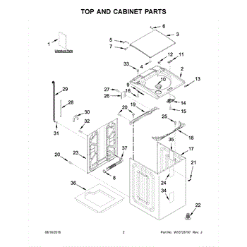 The Top is an OEM part for Whirlpool washing machines. It forms the outer top shell of the washer, providing structure and housing for internal components. The top protects suspension rods, drive motor, controls and other parts while maintaining an attractive aesthetic appearance. It is constructed from durable materials designed to withstand the mechanical stresses of the wash cycle.