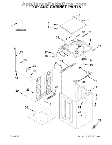 The Top is an OEM part for Whirlpool washing machines. It forms the outer top shell of the washer, providing structure and housing for internal components. The top protects suspension rods, drive motor, controls and other parts while maintaining an attractive aesthetic appearance. It is constructed from durable materials designed to withstand the mechanical stresses of the wash cycle.